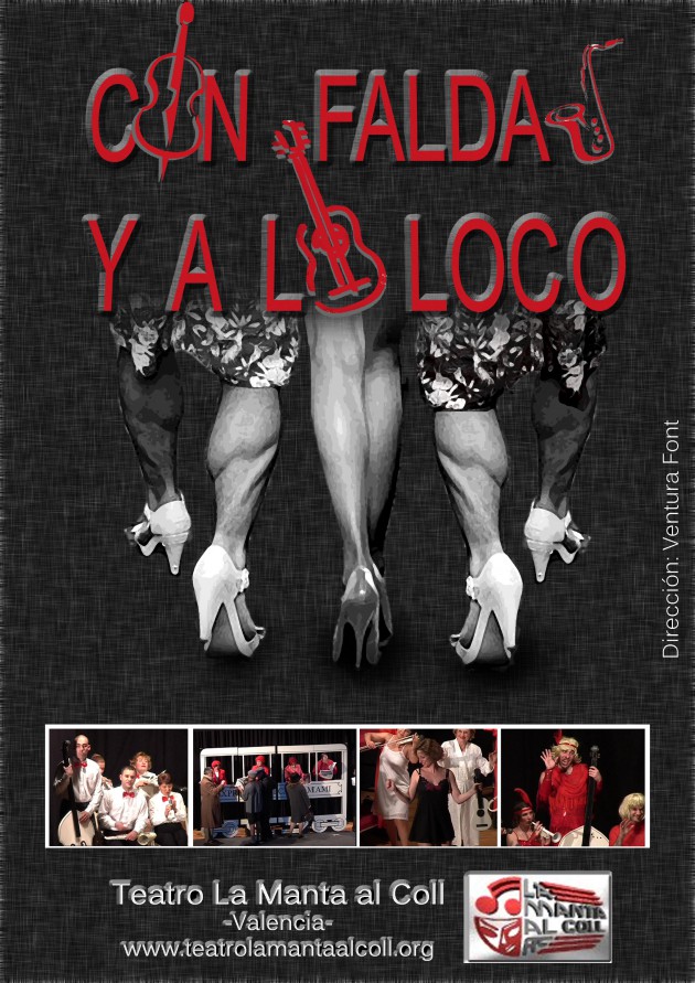 Este domingo 8 de noviembre de 2015 a las 19:00 h en la Casa de la de Cultura de la Llosa de Ranes, la Manta al Coll pondrá en escena su comedia Con Faldas y a lo Loco, basada en la película de Billy Wilder. Los protagonistas Joe y Jerry se verán envueltos en una infinidad de líos entre la America de los Gangsters y el mundo del Cabaret.
